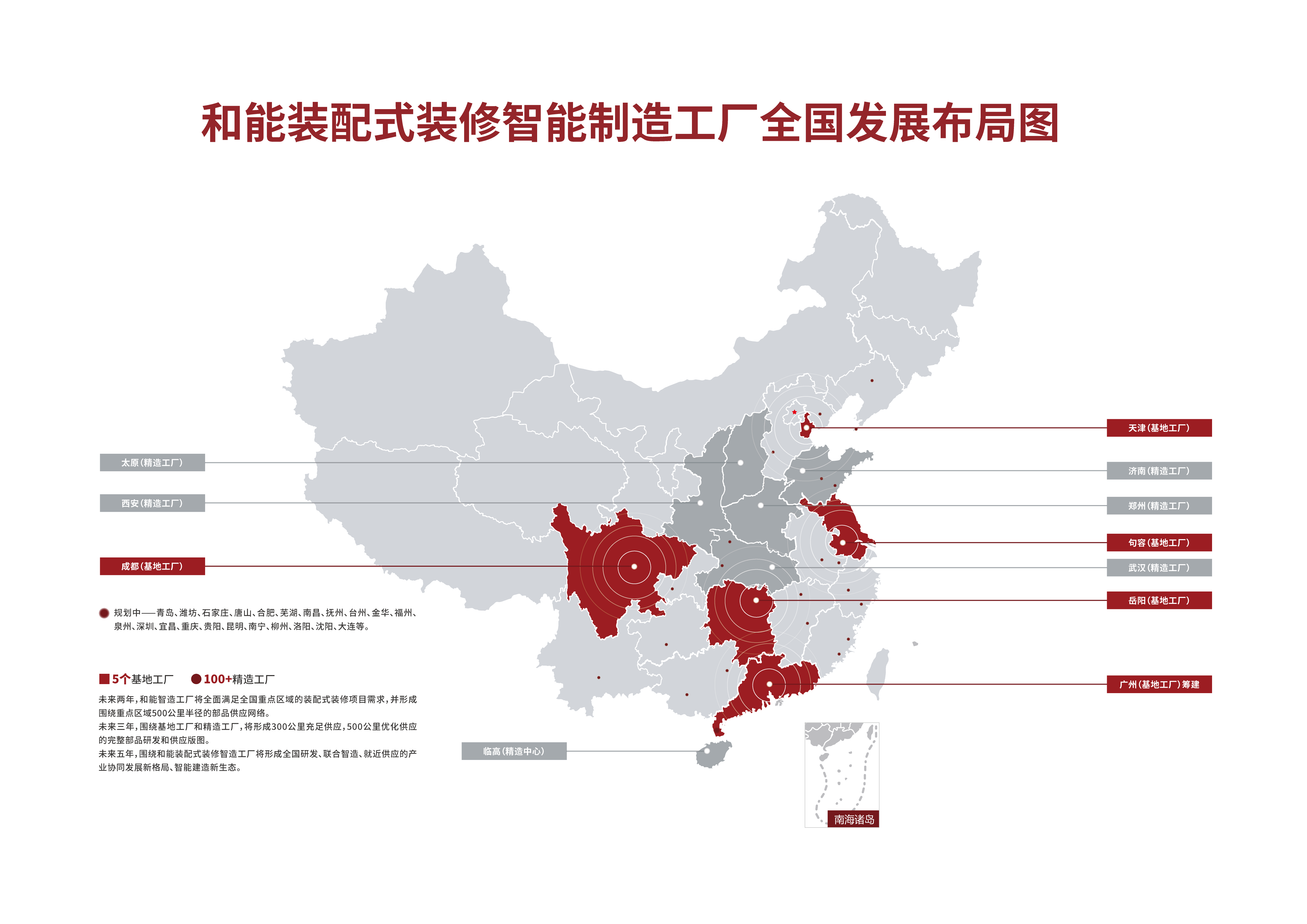 隨著裝配式建筑、綠色建筑以及智能建造在全國(guó)各地快速發(fā)展,裝配式裝修已經(jīng)成為推動(dòng)中國(guó)建筑工業(yè)現(xiàn)代化轉(zhuǎn)型,實(shí)現(xiàn)建筑高質(zhì)量發(fā)展的重要內(nèi)容。而和能也在加大全國(guó)布局力度,加快企業(yè)建設(shè)步伐,成都、江蘇基地相繼投產(chǎn),并加速在廣州、濟(jì)南、海南、武漢等地的布局。