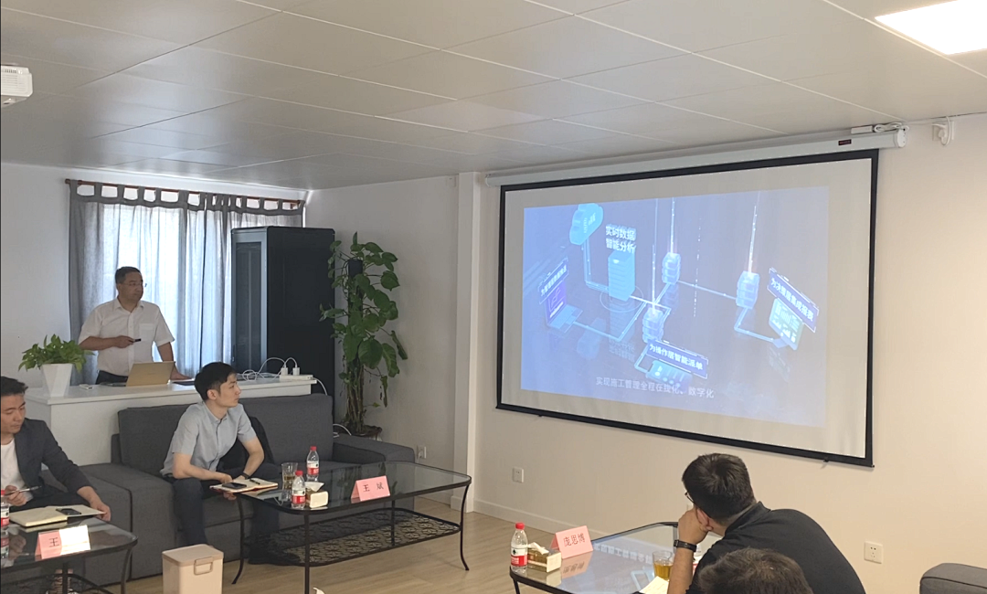 和能人居科技集團(tuán)總裁閆俊杰對津投資本董事長侯宇鋒一行的到訪表達(dá)了熱烈歡迎,并與來賓分享了和能在智能建造方面的思考和取得的成果。