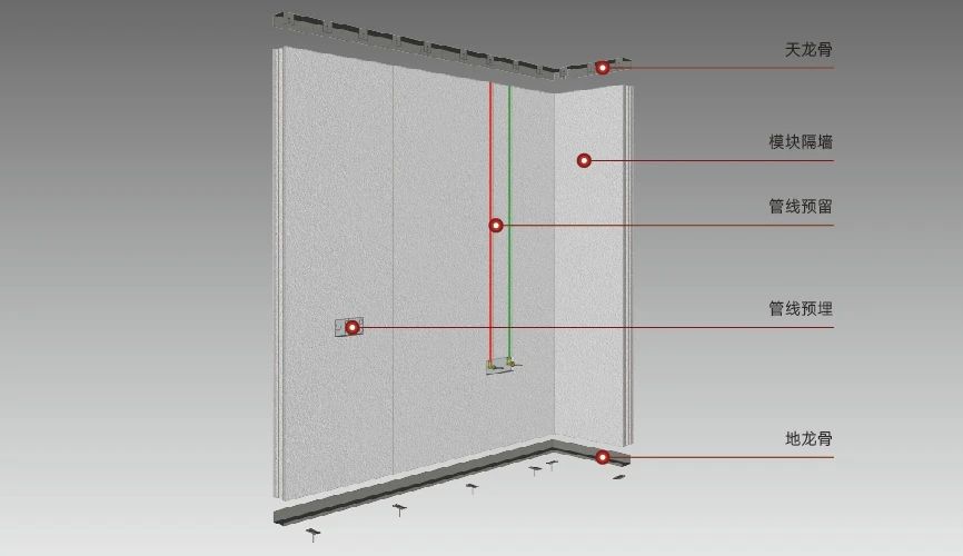 模塊化隔墻系統(tǒng)是一款通過一體化設計,在工廠預制集成的產(chǎn)品。該系統(tǒng)可應用于分戶墻和室內(nèi)隔墻,它將支撐構造、填充材料、設備管線、飾面層集于一體,實現(xiàn)了施工的前置和質(zhì)量的可控性。模塊化隔墻具有較好的隔聲、防火、抗沖擊、吊掛承重性能,同時,隔墻免找平,可以直貼壁紙壁布或裝飾板,施工便利,拆改方便。