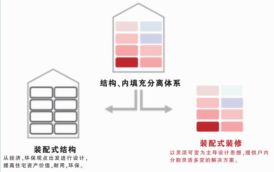 結(jié)構(gòu)與內(nèi)裝修、管線三分離(SI理念),內(nèi)裝修獨立于建筑結(jié)構(gòu),方便全壽命期維修拆改。